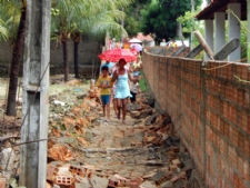 Um muro com cerca de 100 metros de extensão que passa ao lado da ‘Travessa da Selva’ no Mosqueiro caiu na manhã desta segunda-feira, 3, atingindo dois garis contratados pela Prefeitura de Aracaju. Eles faziam a retirada dos móveis e eletrodomésticos estragados pelo alagamento das casas que ficam na Travessa. Na semana passada, a reportagem do Portal Infonet denunciou a situação .