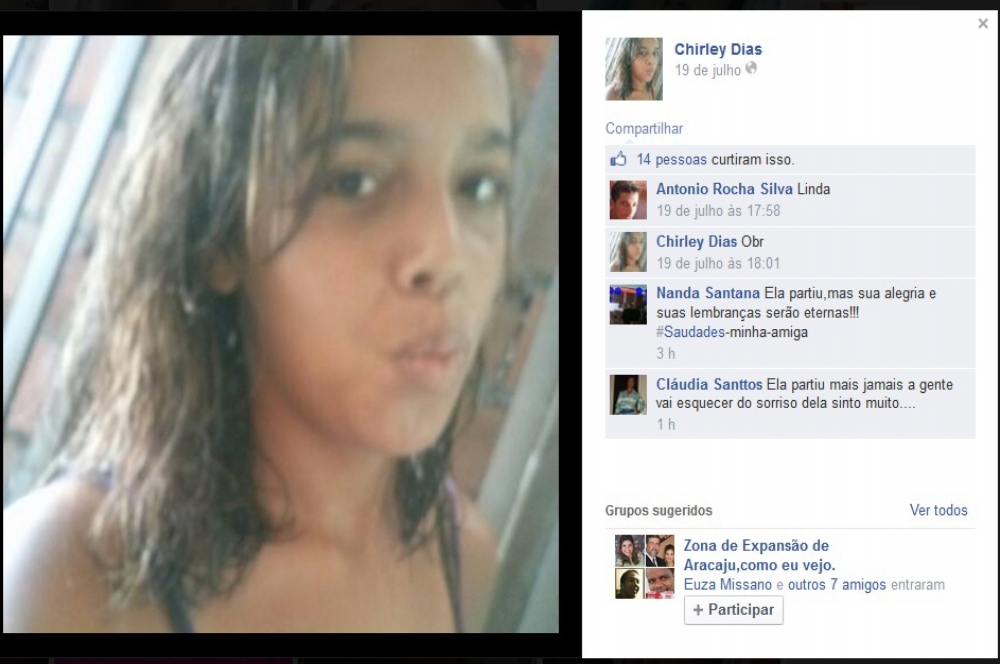 | Chirley: amigos deixam mensagens de pesar no facebook (Foto: Facebook) |