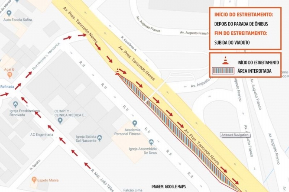 O trecho afetado fica no acesso do condutor que trafega pela avenida Farmacêutica Cezartina Régis, no Conjunto Sol Nascente, em direção à avenida Tancredo Neves. Para subir o viaduto, o condutor deverá cruzar a Tancredo Neves logo na saída do Conjunto.