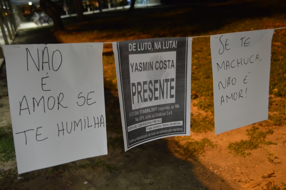 Um ato foi realizado na Universidade Federal de Sergipe (UFS) na noite desta segunda-feira, 17, contra a banalização de casos de feminicídio e violência contra a mulher. A motivação do evento foi mais um caso de feminicídio: a morte de Yasmin Santos Costa, de 19 anos, assassinada pelo namorado.