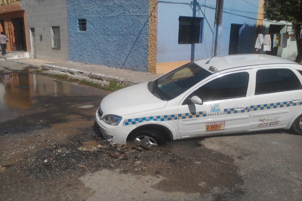 “Eu estava indo buscar um cliente, rodando em velocidade baixa. De repente senti um solavanco, e pensei que a suspensão do carro tinha quebrado. Só depois entendi que o asfalto tinha cedido. O carro não sofreu nenhum dano grave, apenas alguns arranhões e amassos no pára-choques. Mas passei o dia sem poder trabalhar, já que entregar o carro para a avaliação técnica contratada pela Deso”, explica o taxista Antônio César dos Santos.
