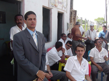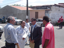 A delegada regional do trabalho adjunta, Rosenilde Santos, conversando com o advogado dos manifestantes e com Fosé farias, um dos demitidos.