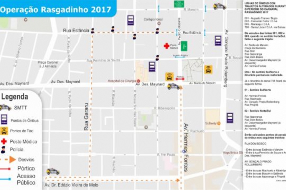 | Bloco Rasgadinho provocará mudanças de circulação na avenida Pedro Calazans e imediações (Imagem: SMTT) |