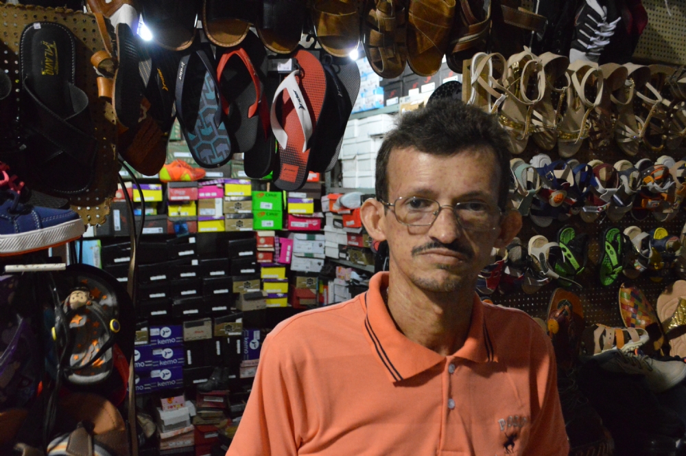 | Vendedores de roupas e calçados têm lojas molhadas e perdem produtos (Foto: Portal Infonet) |