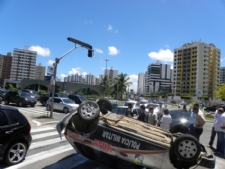 O acidente aconteceu nas proximidades de um shopping e segundo o motorista do carro de placa IAL 8528 de Aracaju/SE, foi causado pela viatura da PM. De acordo com Cleonaldo Ribeiro que seguia pela Avenida Jornalista Santos Santana a viatura avançou o sinal. “Foi tudo muito rápido, não sei se estava em alta velocidade, só sei que o sinal estava verde para mim”, garante o condutor. O militar Santos que conduzia a viatura desmente a versão e afirma que seguia no cruzamento e o sinal estava verde quando foi surpreendido com a colisão. O impacto foi tão forte que a viatura O condutor do carro de passeio não teve ferimento e o veículo teve a frente parcialmente danificada. A pista ficou interrompida e o trânsito lento. Agentes de trânsito da Superintendência Municipal de Transportes e Transito (SMTT) orientaram os motoristas que trafegavam pelo local. Por Kátia Susanna