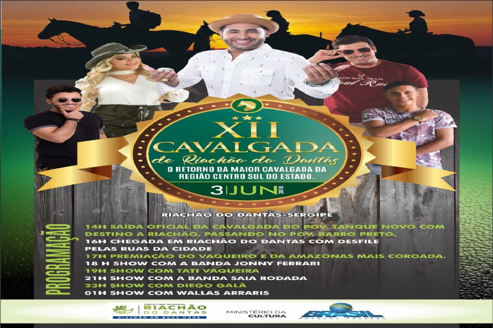 A Cavalgada mais famosa da região Centro sul do Estado está de volta. A prefeitura anunciou o retorno da tradicional cavalgada de Riachão do Dantas, marcado para o próximo dia 3 de Junho, saída do Povoado Tanque Novo para a sede Riachão do Dantas.