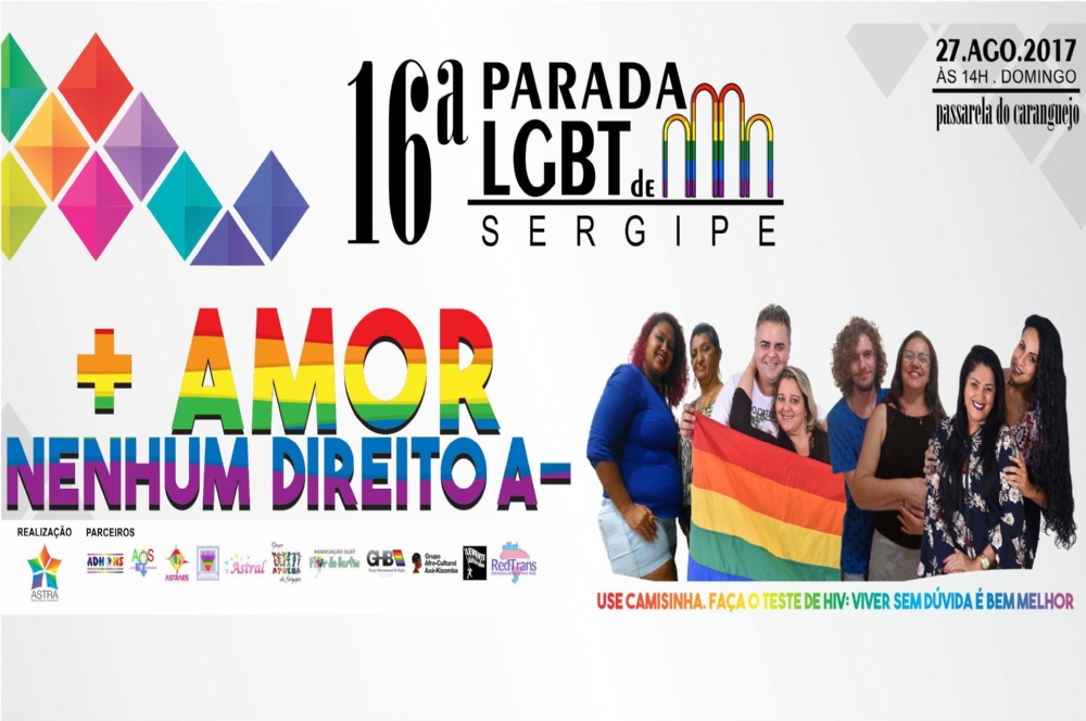 A 16ª edição da Parada LGBT de Sergipe acontece no próximo domingo, 27 de agosto, na Orla de Atalaia, em Aracaju, com o tema ‘Mais amor, nenhum direito a menos’.