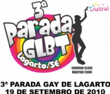 A 3º Parada do Orgulho GLBT (Gays, Lésbicas, Bissexuais e Trangêneros) do município de Lagarto acontece no próximo dia 19 de setembro. A festa, que já faz parte do calendário festivo da cidade, trás atrações como a cantora sergipana Cyfysia.
