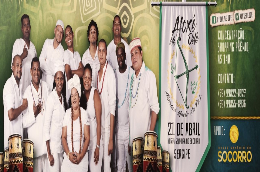 No próximo dia 21 de abril, sexta-feira, a partir das 14h, acontece a sexta edição do Afoxé de Odé. O cortejo traz a magia dos tradicionais afoxés, também conhecidos como Candomblés de rua, que integram diferentes contextos da música ritual religiosa afrodescendente ao som dos atabaques e agogôs do povo de Odé. Um evento cultural e religioso que busca congregar adeptos, simpatizantes, autoridades e todo o povo de santo. O Afoxé já faz parte do calendário cultural oficial do município de Nossa Senhora do Socorro.