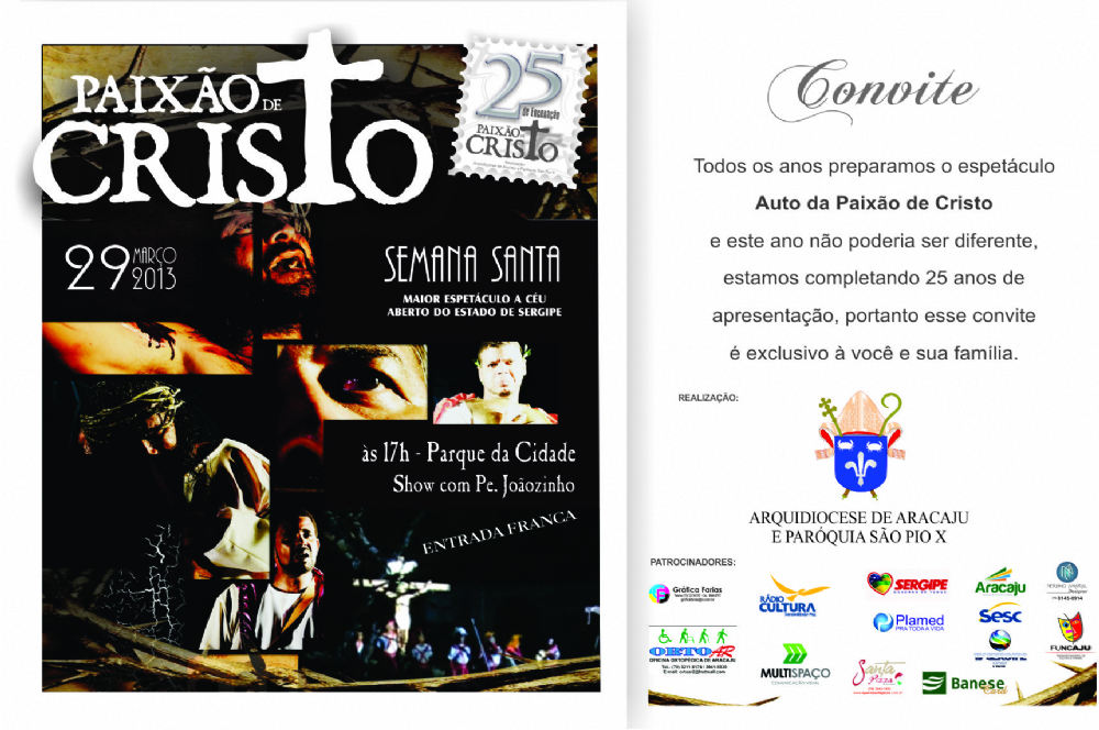 “Este ano será um evento mais que especial, para nós que atuamos com tanto amor, fé e dedicação. Estamos completando 25 anos de evangelização através da nossa arte. Queremos compartilhar com todos nossa alegria, em podermos contar essa história, tão linda e atual da paixão, vida, morte e ressurreição de Jesus Cristo” ,disse Moritos Matos, que é o diretor geral do espetáculo e que é protagonista encenando há 17 anos, como Jesus Cristo.
