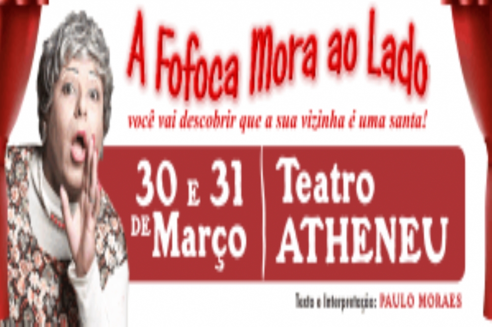 Vamos Aleluiar! Participe da peça "A Fofoca Mora ao Lado” inspirada em Dercy Gonçalves, em cartaz há 3 anos em São Paulo, com o ator Paulo Moraes, que será apresentada nos dias 30 às 20h e dia 31de março às 19h no Teatro Atheneu.