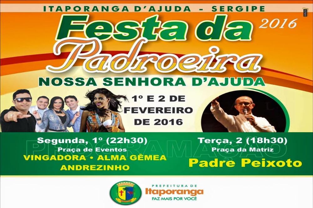 A Prefeitura de Itaporanga D'Ajuda divulgou a programação da festa da padroeira da cidade, Nossa Senhora D'Ajuda, que acontece nos dias 01 e 02 de fevereiro.