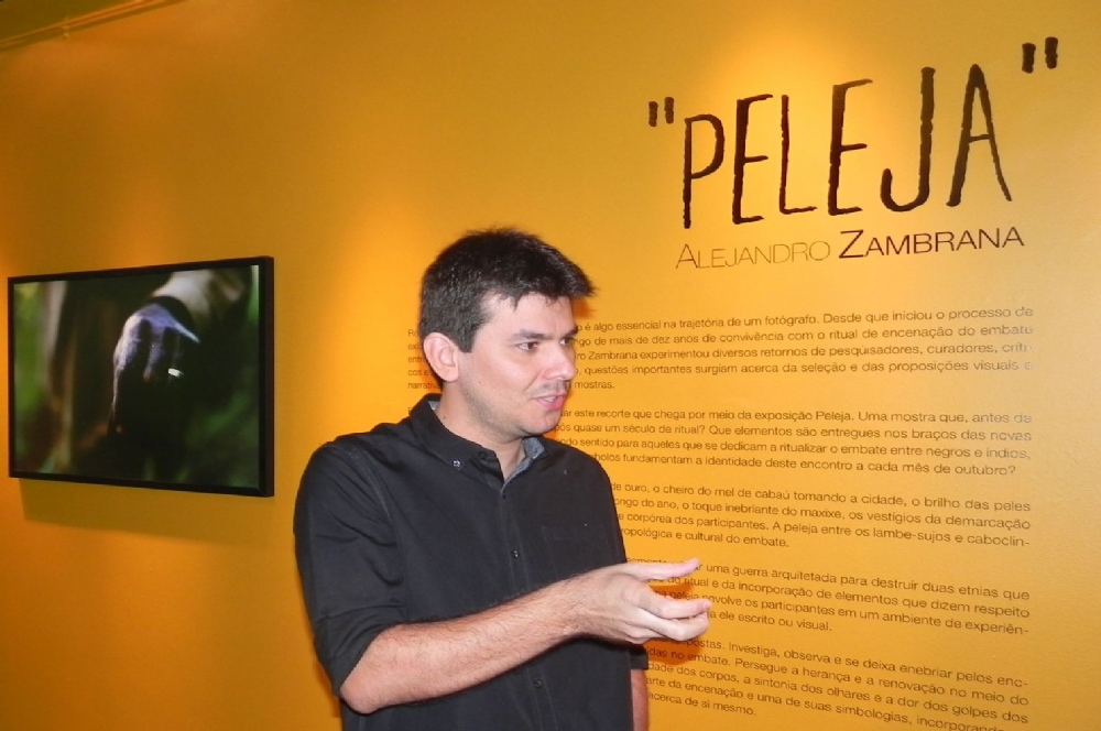 Inédita em Aracaju, a exposição ‘Peleja’, de autoria do fotógrafo Alejandro Zambrana, foi lançada na noite desta terça-feira, 13, na Galera Jenner Augusto, Sociedade Semear. A mostra é um recorte documental que tem como foco a tradicional festa de Lambe Sujo e Caboclinho, realizada anualmente no município de Laranjeiras.