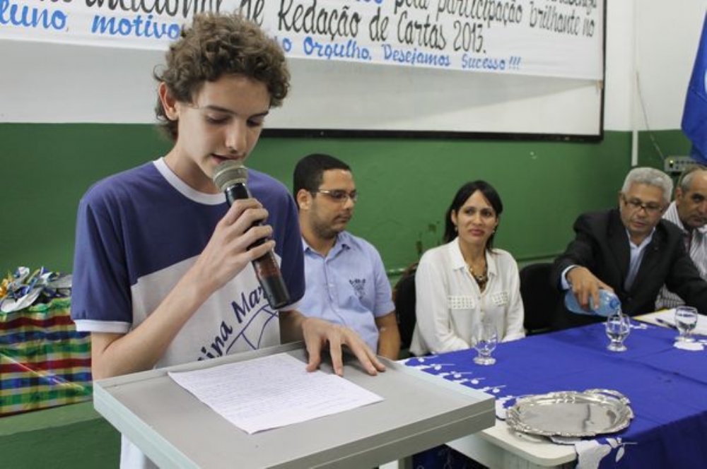 A carta escrita pelo estudante foi direcionada à ONU e pedia mais atenção para os problemas que envolvem a água. “Acredito que todos deveriam se interessar por esse tema”, revelou o aluno, que recentemente venceu outros concursos de matemática e informática. A professora de redação de Giordano, Suely Rodrigues, destacou que ele tem uma maneira especial de escrever, transitando facilmente por todos os gêneros. “Ele ouve o professor com atenção, lê com compreensão e escreve com propriedade”, elogiou.