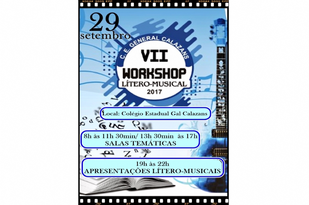 Na próxima sexta-feira, 29, a comunidade escolar do Colégio Estadual General Calazans realiza o Workshop Lítero-Musical 2017. Em sua sétima edição, o evento visa desenvolver o protagonismo juvenil, despertando o espírito de liderança, compromisso e responsabilidade dos estudantes da unidade escolar.