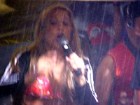 Babado Novo está realmente na boca do povo. E para quem está em casa e quer saber de um babado, a vocalista não dispensou o tradicional modelito rosa. Com uma micro saia, botas e um bustiê rosa, ela se protegeu do vento forte com um casaquinho preto.