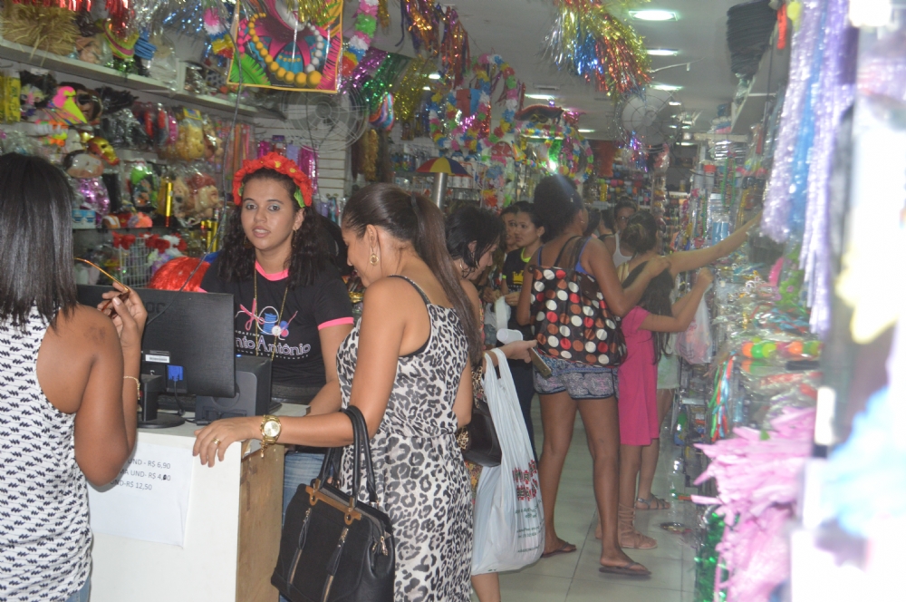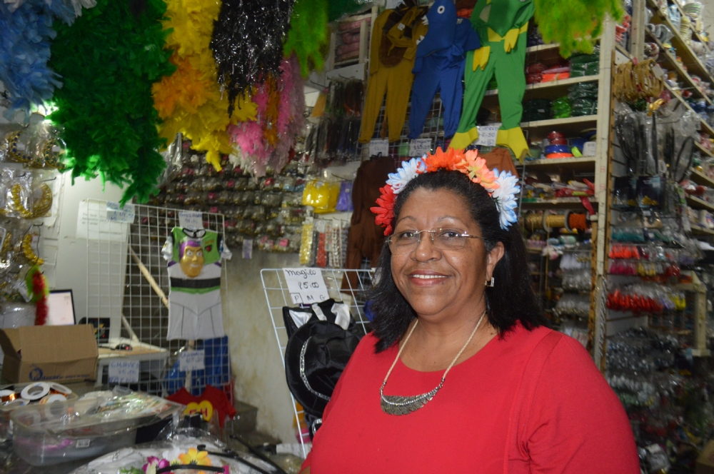 “A loja está cheia, o movimento está melhorando, principalmente por causa das festas de Carnaval nas escolas. A procura por fantasias infantis, espumas, confetes e serpentinas vem aumentando. Os acessórios como tiaras, coroas e chapéus carnavalescos também está crescendo”, comemora a gerente de um armarinho localizado à Av. 7 de Setembro, Denise Rezende.