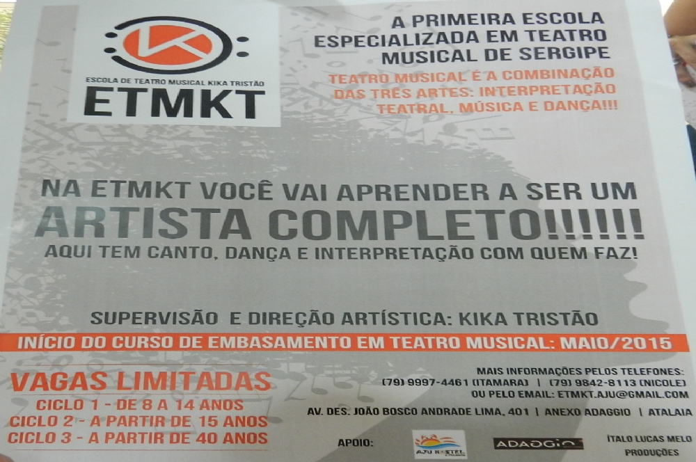 Aracaju irá receber no dia 6 de maio a primeira Escola de Teatro Musical Kika Tristão (ETMKT). A finalidade é trazer para o mercado sergipano uma escola especializada em teatro musical para as pessoas que querem e precisam de uma formação como artista.