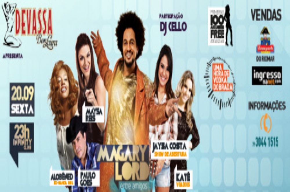 Músico de talento inventivo que através de uma profusão de sonoridades afro-brasileiras, misturada a influências de outras células musicais criou o Black Semba, ritmo vibrante e que transforma suas apresentações em uma explosão de alegria. Estamos falando de Magary Lord, diretamente da Bahia, o maestro de uma música solar que tem feito o público balançar com sua diversidade sonora carregada de vibrações positivas está chegando em Aracaju para o lançamento do Projeto "Magary Lord Entre Amigos" dia 20 de Setembro (Sexta-Feira) na Infinity Club, a partir das 23h.