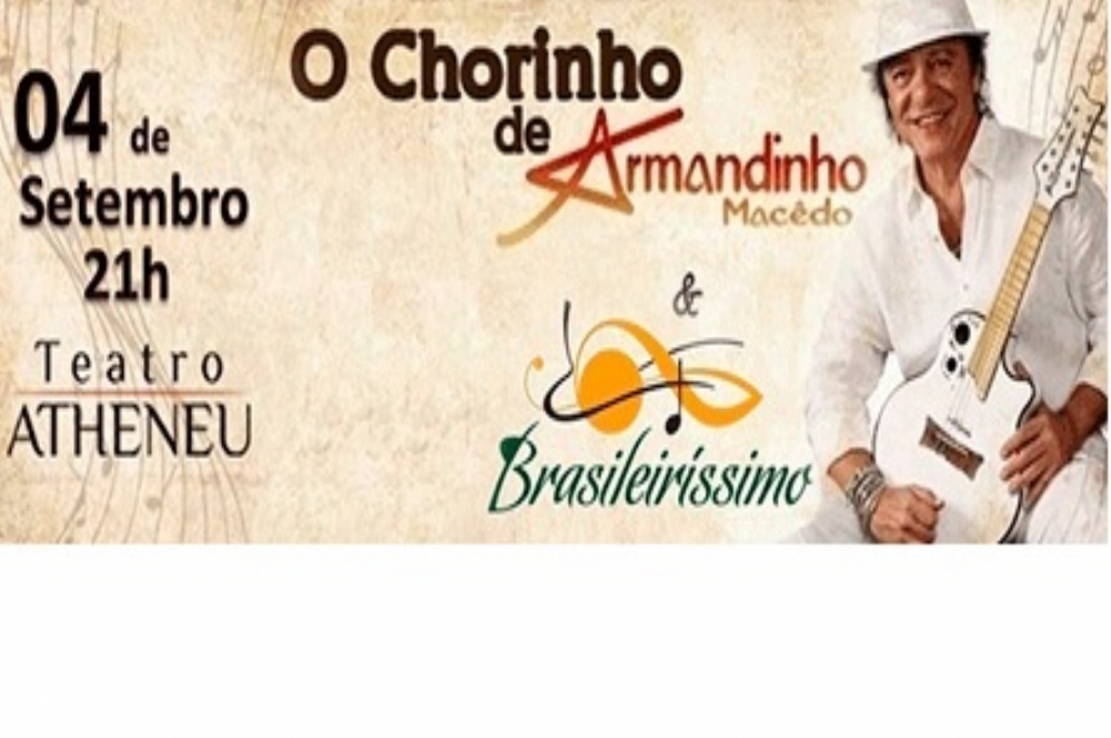 Está marcado para o próximo dia 4 de setembro, o show “O Chorinho e Armandinho Macêdo e Brasileiríssimo”, a partir das 21h no Teatro Atheneu. Com o objetivo de manter vivo o choro, um dos estilos musicais mais antigos do Brasil, nasceu o projeto O Chorinho de Armandinho. Neste trabalho, Armandinho Macêdo, acompanhado de violão sete cordas, cavaquinho e pandeiro faz uma síntese de suas principais vertentes artístico-musicais.