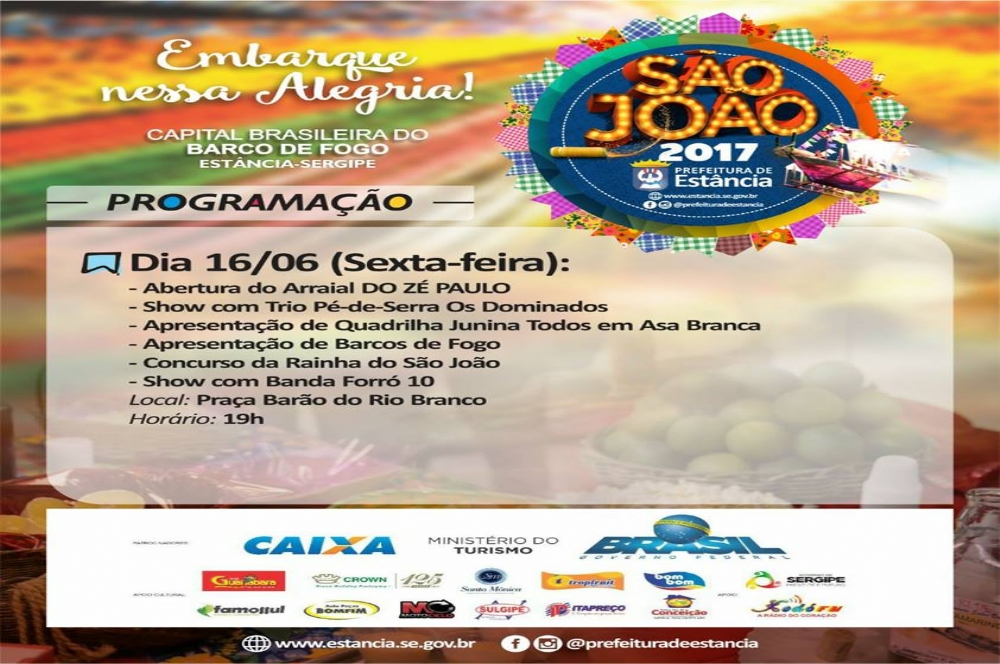Nesta sexta-feira, 16, a partir das 19h, a Prefeitura de Estância será realizada a abertura do Arraial “Zé Paulo”, em homenagem a José Paulo Araújo, estanciano de coração que sempre trabalhou e lutou pela preservação da festa maior no município, os festejos juninos.