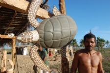 No litoral norte do Estado às margens do Rio Japaratuba um artesão tem conseguido sobreviver da arte que produz com um material abundante e pouco utilizado no Estado: a madeira do Coqueiro. Paulo Lima, artesão há mais de 16 anos, considera sua matéria-prima “ecologicamente correta”. “Estou fazendo meu trabalho sem agredir a natureza”. Ele explica que não derruba as árvores para retirar a madeira, ele utiliza apenas aquelas que caem, pela ação do tempo ou da própria natureza. Figura de animais viram arte nas mãos do artesão Paulo Lima