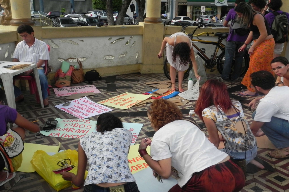 Um ato realizado no final da tarde desta sexta-feira, 9, na praça Fausto Cardoso [por militantes e ativistas], prestou solidariedade aos índios Guarani Kaiowá, que estão sendo assassinados e despejados de suas terras no Mato Grosso do Sul por fazendeiros.