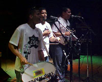 O cantor e compositor Eugênio Bispo e o grupo Bambas do Forró fizeram a festa de dezenas de aracajuanos que estão reunidos esta noite no Forró Caju 2005. A apresentação aconteceu no palco Gerson Filho, com um repertório recheado de tradicionais canções do grupo, como “Forró do Balancê” e “Sua Foto Colorida”.