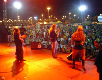 Quem acaba de subir ao palco da Vila do Forró Chapéu de Couro é a banda Nega Rodada, que promete um show bem animado para esta noite de São João. A apresentação começou pontualmente às 22 horas, como estava previsto na programação. Antes disso, a equipe do Portal InfoNet conversou com os vocalistas Fran e Sandra Morena.