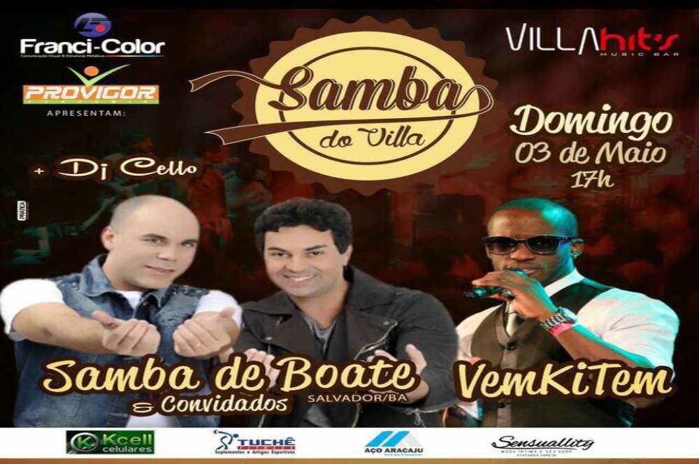 O Villa Hits Music Bar apresenta neste domingo, 3 de maio, o ''Samba do Villa'' com a banda baiana ‘Samba de Boate’ pela primeira vez em Aracaju e o grupo sergipano VemKiTem. A festa começa às 17 horas.