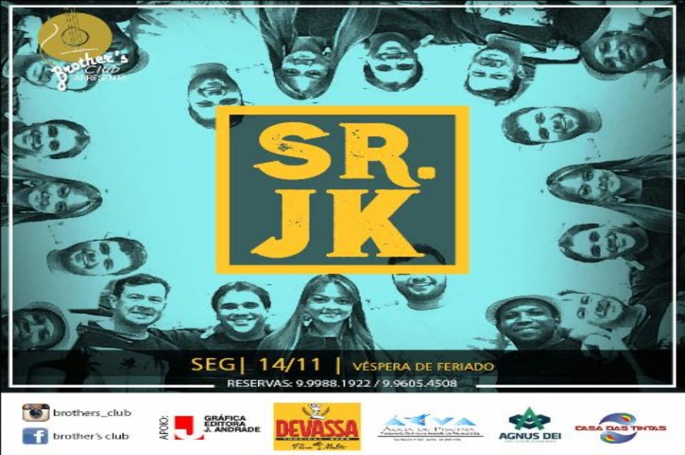 O grupo promete um repertório com sucessos do rock clássico às releituras da música popular brasileira, a banda traz ainda aos palcos as suas influências e preenche seu repertório com suas composições, aliadas à potência e à suavidade de uma marcante voz feminina. Formada em meados de 2016, a SR.JK nasceu do reencontro de velhos amigos com a música, trazendo novos parceiros que toparam o desafio de fazer um som universal, que tocasse a todos com letras e canções que atravessam gerações.