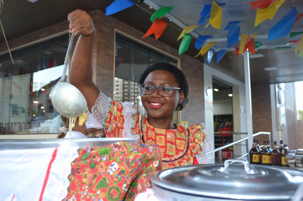 As barraquinhas das comidas típicas desse período junino são uma atração a mais para quem gosta de degustar os alimentos. Nas padarias, elas estão recheadas com uma variedade de itens para atender todos os gostos. Os tradicionais bolos de macaxeira, leite e milho, se juntam aos mingaus, doces e licores e colorem o comércio.