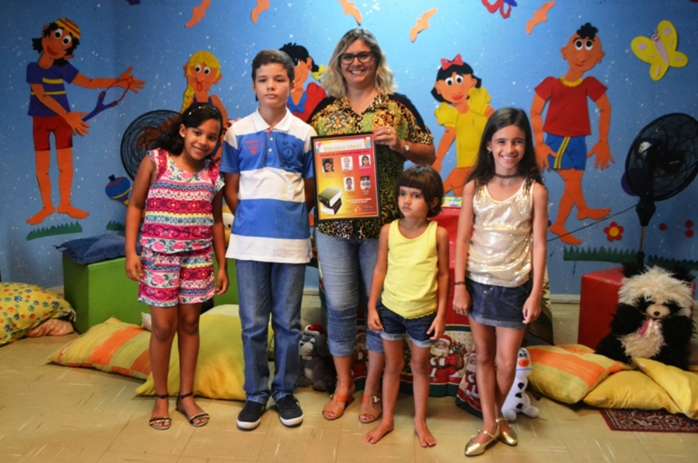 Encerrando as atividades do ano, a Biblioteca Infantil realizou a entrega do Prêmio Leitores Destaque 2016, para as crianças que mais utilizaram o espaço da Biblioteca. As crianças premiadas ganham presentes e suas fotos no quadro de destaques dos últimos anos. Os leitores homenageados foram: Maria Clara Vitória dos Santos Andre, Sofia Santos Matos, Rayara Koesling Affonso Conte, João Pedro França da Silva e Flor de Lotus Costa Carvalho.