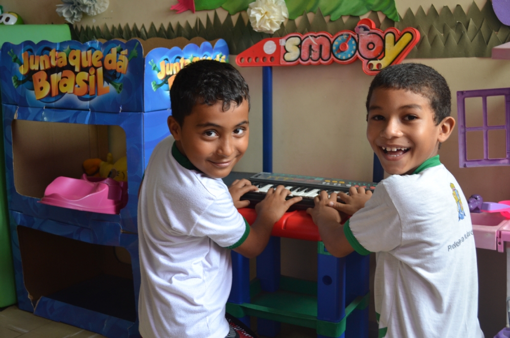 | Hugo (à direita) se diverte na brinquedoteca |