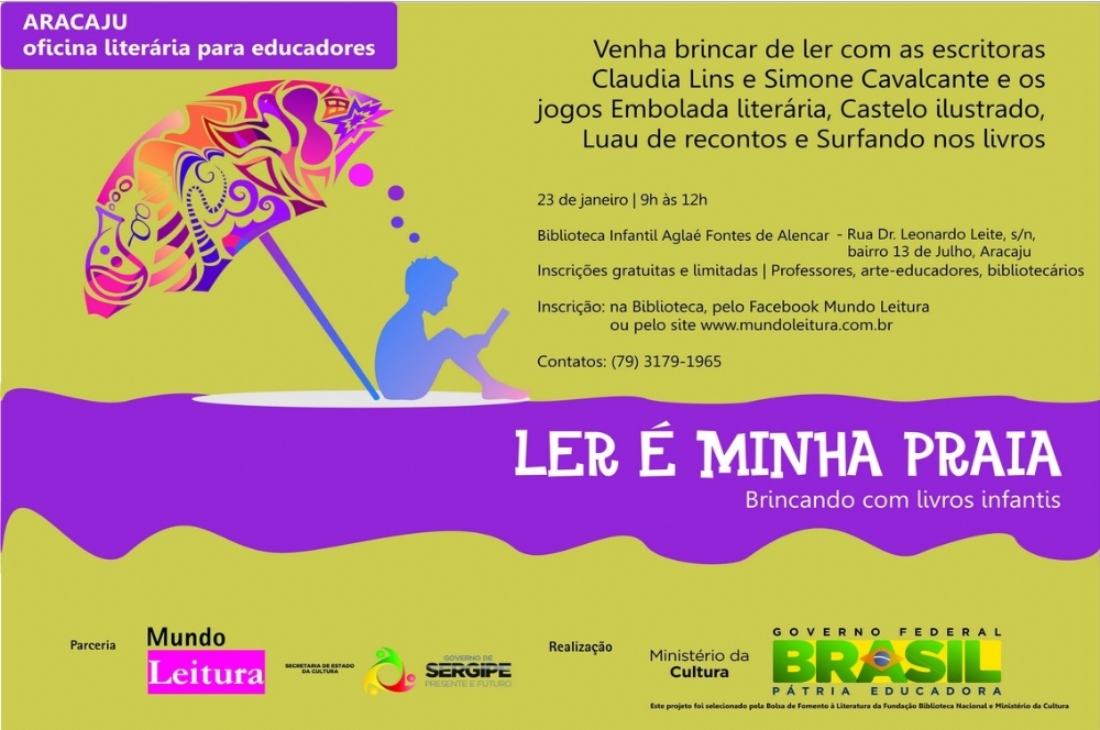 A Biblioteca Infantil Aglaé Fontes Alencar (Biafa), unidade da Secretaria de Estado da Cultura (Secult), realiza durante os dias 22 e 23 de janeiro, o projeto “Ler é Minha Praia”. Contemplado com a Bolsa de Fomento à Literatura da Fundação Biblioteca Nacional, vinculada ao Ministério da Cultura (MinC), o projeto “Ler é Minha Praia Brincando com os Livros Infantis” realiza uma maratona de oficinas literárias gratuitas voltadas para crianças e educadores.