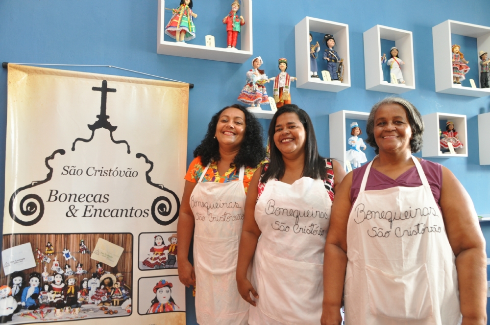 O grupo das Bonequeiras de São Cristóvão é formado por doze mulheres – todas costureiras – e ainda conta com o apoio de outras mulheres da comunidade e da prefeitura da cidade. “O nosso grupo começou com trinta mulheres, mas esse número caiu com o passar do tempo. Agora nós revezamos para dar conta da produção e do nosso cantinho, localizado aqui na Praça São Francisco”, ressalta Maria Lurdes Silva.