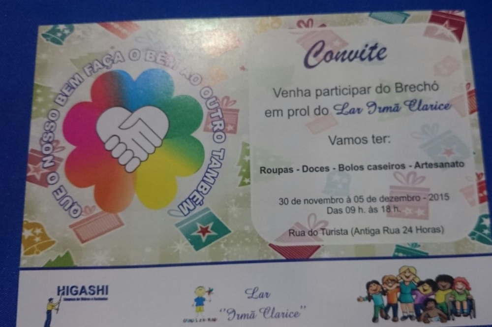 De acordo com a voluntária e organizadora do brechó, Maria do Socorro Gondim, o objetivo é arrecadar fundos para a creche que atende as crianças do Santa Maria. “Esse brechó é em prol da creche Lar Irmã Clarisse que hoje atende cerca de 13 crianças no Santa Maria. Tudo que for vendido será doado a creche”, enfatiza.