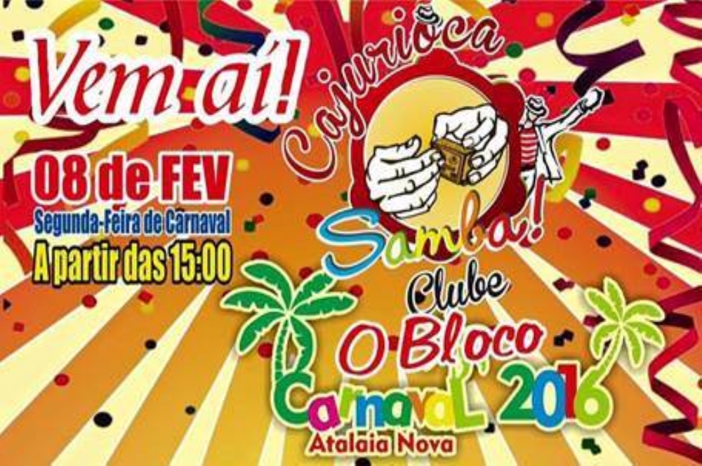 O Cajurioca é o primeiro bloco de samba de raiz da Atalaia Nova. Com alegria e ritmo, o bloco vai reunir os foliões na rua Ministro Rego, nº 56, no final de linha da Atalaia Nova, na Barra dos Coqueiros.