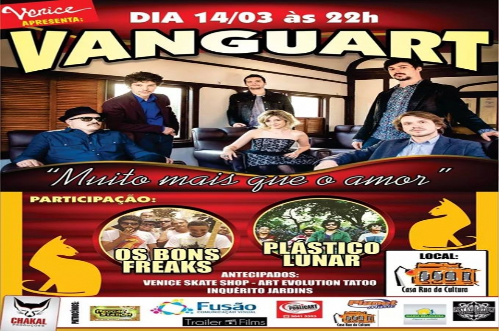 No dia 14 desse mês acontecerá o show com a banda Vanguart e participação das bandas Os Bons Freaks e Plástico Lunar. De acordo com a assessoria de imprensa, essa é uma das melhores bandas surgidas no cenário nacional dos últimos anos. O Vanguart alcança com o novo álbum “Muito mais que o amor”.