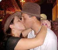Hoje, dia 22, é o aniversário de casamento de Langesson Silva, 31, e Kelly Silva, 27. Não só de casamento, mas também de namoro e de noivado. Eles estão juntos há quatro anos e se conheceram no Forró Caju 2001. “Todos os anos comemoramos a alegria de estarmos juntos aqui no Forró Caju, principalmente no dia 22. A gente tem que vir na origem, onde começou nossa vida juntos”, diz Langesson.