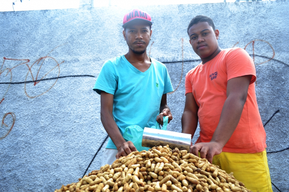 O amendoim não parava de chegar em sacos que custam R$ 70. A lata, vendida a uma média de R$4, animao Wellington Santos que se aventura no comércio do alimento pela primeira vez. “Dá pra fazer um dinheirinho por fora”, diz.