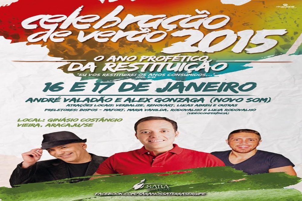 Em 2015 a Celebração de Verão trará a presença de Alex Gonzaga (Novo Som), Andre Valadao, Banda Verbalize e outras atrações locais. O evento contará com a ministração da Palavra de Deus com o Bispo Jose Paulo Mafort, Bispa Maria Vanilda e por videoconferência o Bispo Robson Rodovalho e a Bispa Lúcia Rodovalho. O evento ocorrerá nos dias 16 e 17 de janeiro de 2015. Mais informações por meio do (79) 3302-8020.
