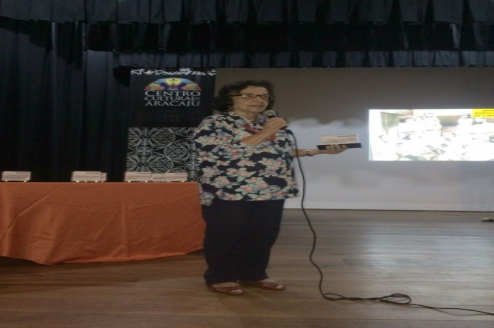 | A presidente da Funcaju, Aglaé Fontes recebeu a placa (Foto: ascom Funcaju) |