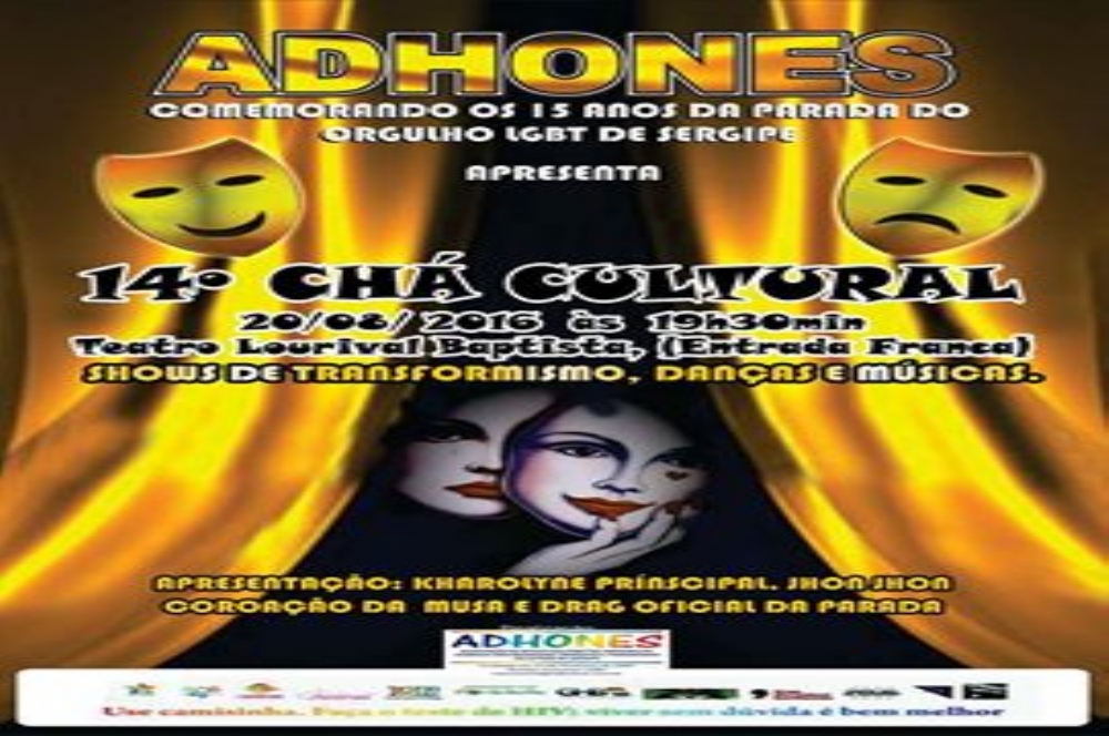 Neste sábado, 20 de agosto, a partir das 19h30, no Teatro Lourival Batista, acontece mais uma edição do Chá Cultural da Associação de Defesa dos Direitos Humanos de Lésbicas, Gays, Bissexuais, Travestis e Transexuais do Estado de Sergipe (Adhones).