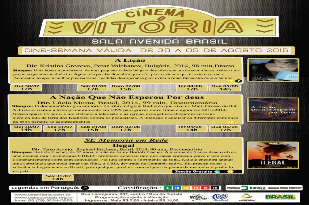 O Cine Vitória está localizado na Rua do Turista, Centro de Aracaju, nº 307, e conta com apoio do Banese Card, Gráfica J Andrade, Pontão AvBr e Infonet. Os ingressos são vendidos a preços populares de R$7 e R$14, meia e inteira, respectivamente. Mais informações no site.