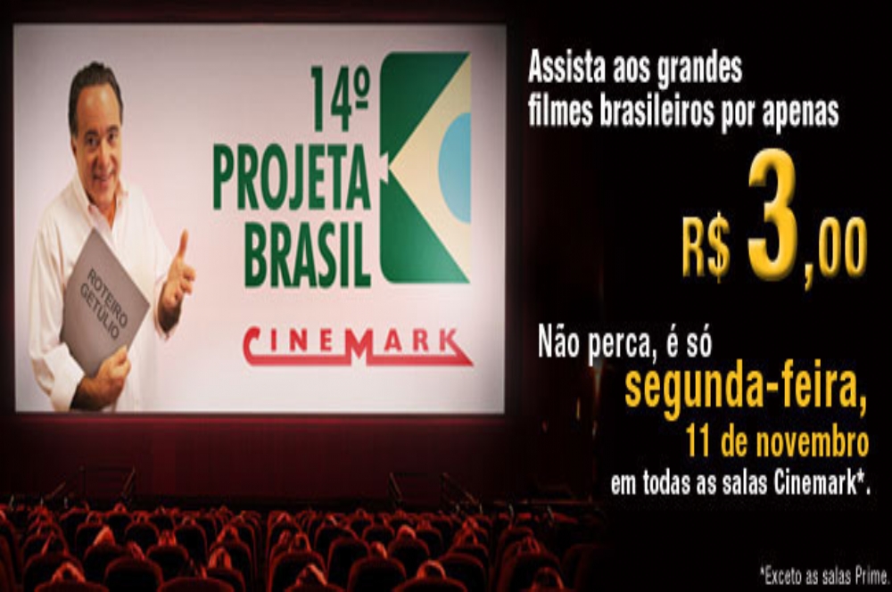 No dia 11 de novembro ocorre o 14º Projeta Brasil, que leva filmes brasileiros com ingressos a R$ 3,00 do Cinemark. Em parceria com a Tela Brasil, mais uma vez a rede exibirá, durante todo o dia, diversas produções nacionais a preço popular.