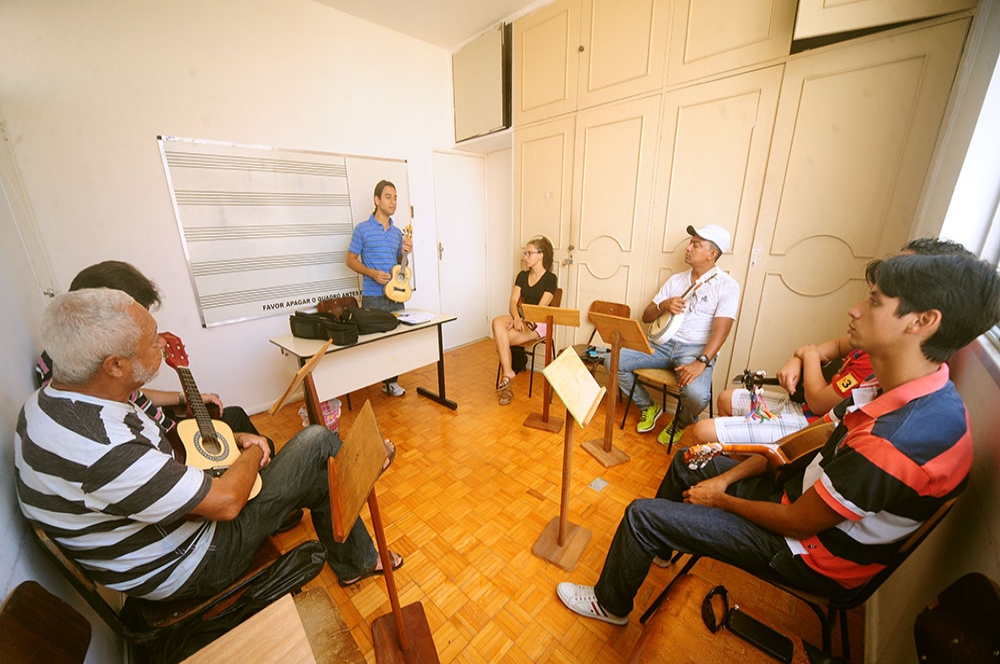Professor de cavaquinho, violão e bandolim, Bruno Leonil, conta que, neste primeiro momento, os discentes aprendem a conhecer e se familiarizar com o instrumento. "Logo em seguida, eles começam a treinar e até o final do curso, o aluno pode sair tocando um instrumento. Alguns deles já conhecem e sabem tocar, com isso a interação é um ponto bastante positivo, pois quem sabe ajuda quem está começando", explica.