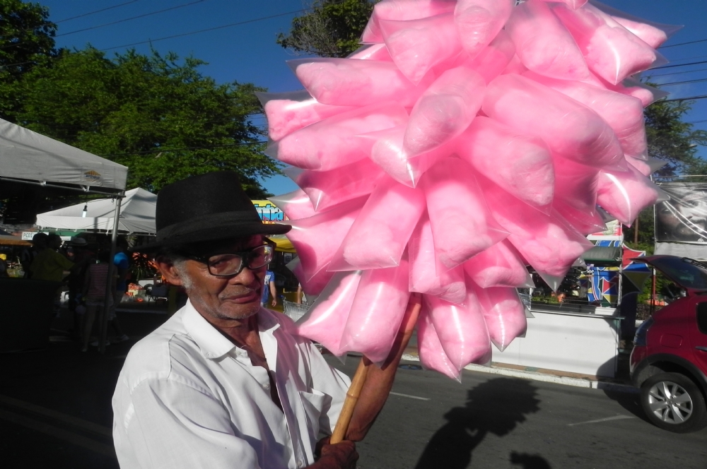José Cassiano, de 74 anos, aproveitou a concentração de público na Avenida Pedro Calazans na tarde deste sábado, 6, e logo providenciou algodão doce para garantir o faturamento. “Sou de Alagoas e vim para visitar familiares. Na oportunidade, resolvi faturar com vendas destinadas, especialmente, às crianças que gostam de um saboroso algodão doce”, declarou o vendedor.
