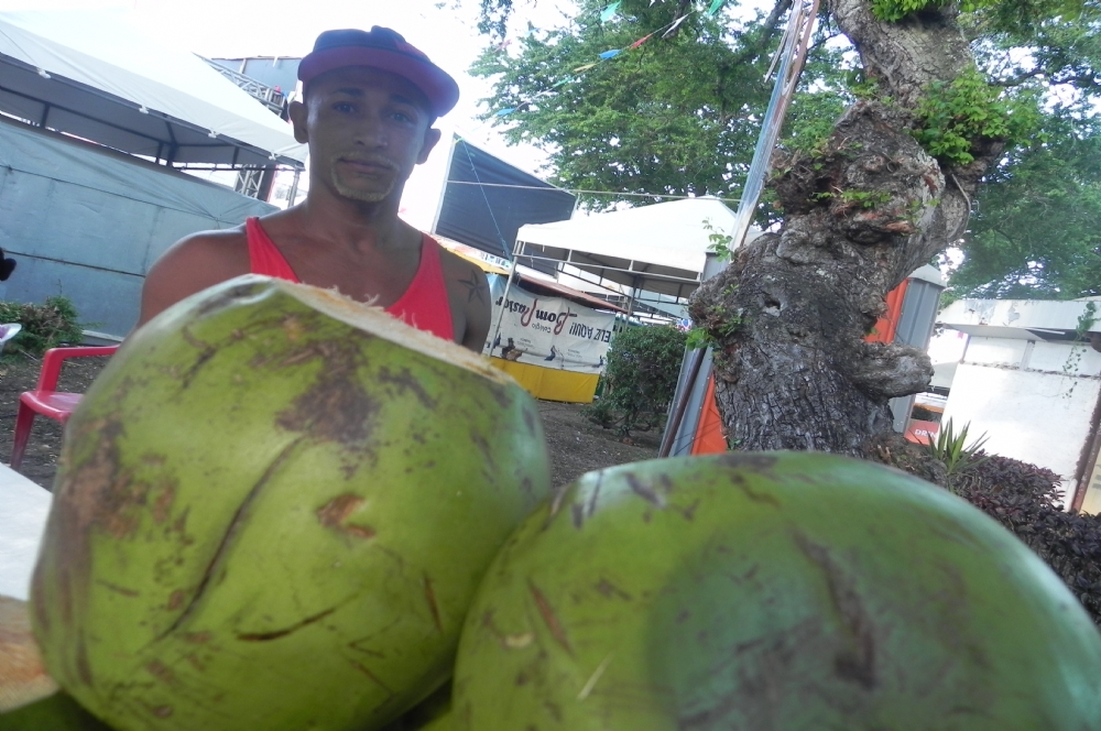 A água de coco, uma das formas de hidratação mais utilizadas entre crianças, está sendo vendida a R$ 5 pelo vendedor Leandro Santos, que pela primeira vez comercializa na festa. “Crianças e adultos se satisfazem com água de coco quando expostas ao sol, daí a intenção de oferecer o produto e aproveitar os compradores”, destacou.