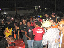A Odonto Fantasy havia oficialmente se iniciado, lotando o espaço do Sítio Terêncio com milhares de fantasiados. A festa, que foi até a manhã do outro dia, teve de tudo. No palco principal – na verdade, palcos, pois eram dois – rolou axé, rock e mais axé. No espaço alternativo, reggae e músicas dos anos 80. Na tenda, música eletrônica de todas as vertentes. Passarela Todavia, a maior diversão, é claro, eram as fantasias. Ver, ser visto, rir das mais engraçadas e admirar as mais elaboradas. E como a intenção era ver e ser visto, a produção da festa armou uma passarela especial, logo na entrada, para que os fantasiados exibissem seus trajes – que logo formou uma grande fila, já que todos estavam com esse espírito. Acima de tudo, o que prevalecia era curtir a festa na pele de um personagem montado para a ocasião. Poderia ser de improviso, alguma idéia tomada no último momento, bem como elaboradas e caras produções, rica em detalhes. “Já vinha A complexidade das fantasias não era à toa. Muitos dos fantasiados estavam de olho no concurso de fantasias que começaria na festa. As melhores e mais criativas, após passarem por um crivo técnico, participarão de uma final on-line – as vencedoras individual, casal e grupo irão ganhar viagens à Argentina, Praia do Forte e Itacaré. Bungee Jump